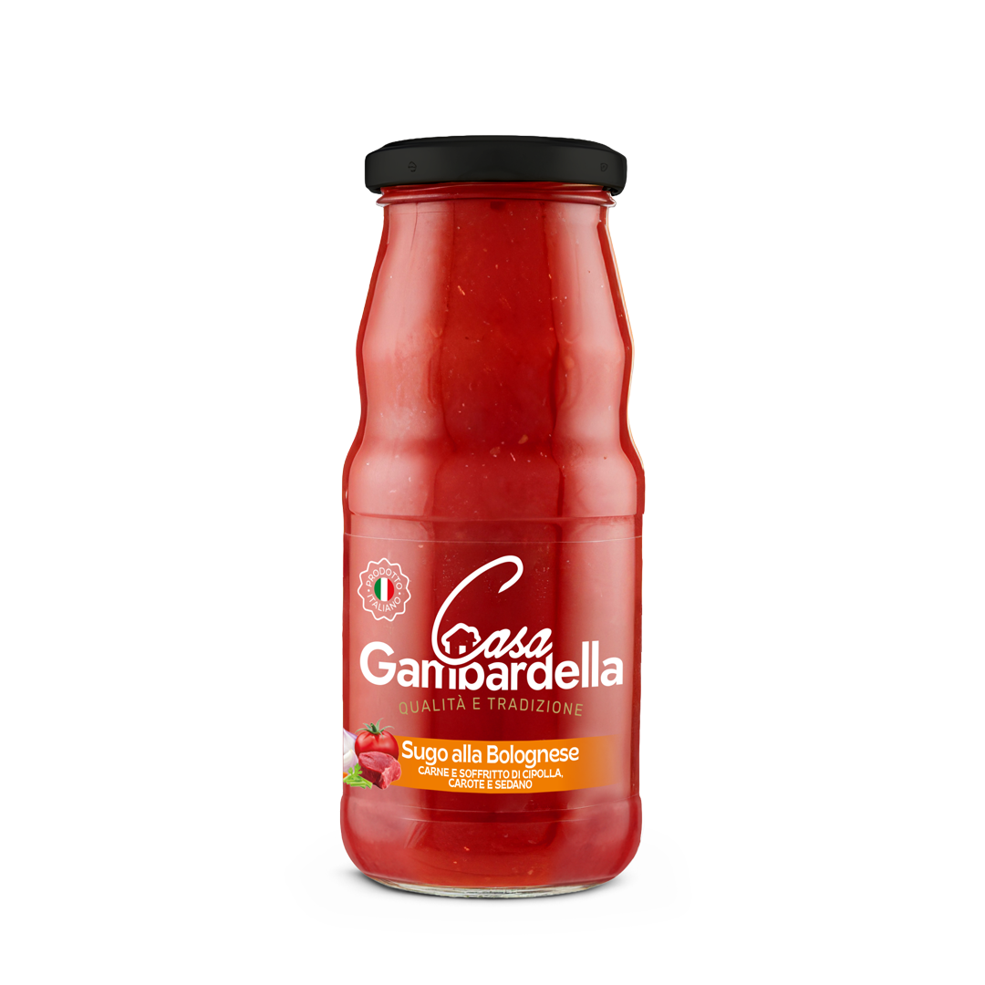 Carne selezionata, pomodoro italiano e soffritto di cipolla, carote e sedano. Ricetta autentica e sapore pieno, come fatto in casa.